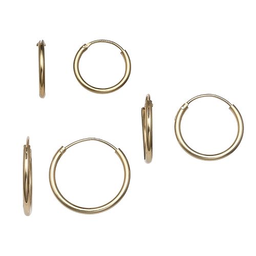 3 Pairs 10k Yellow Gold Hoop Earring Set Iob
