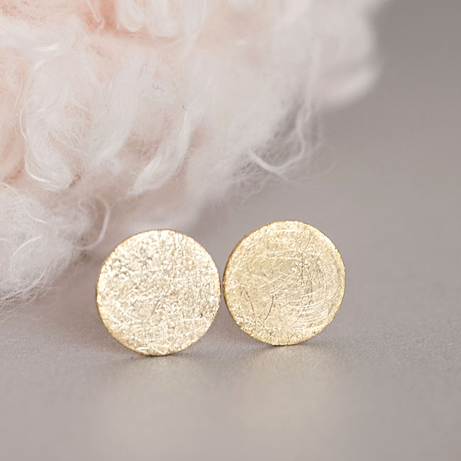 Gold Textured Disc Stud Earrings Round Circle Minimalist Ear Posts