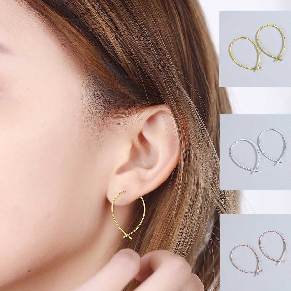 Chengxun Trendy Threader Fish Hoops Minimalist Earrings Gold Earrings Silver Pull Through Women Large Hoop