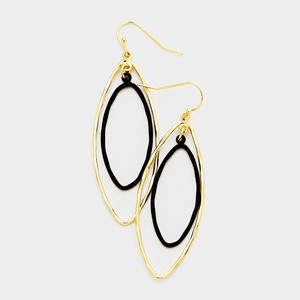 Details About Double Oval Hoop Black And Gold Dangle Drop Earrings