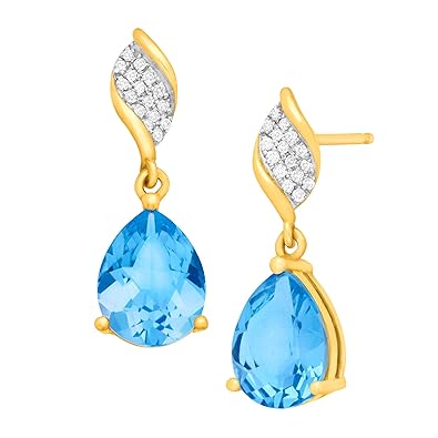 Color Stone Drop Earrings With Diamonds In 10k Gold