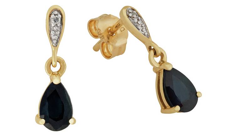 Buy Revere 9ct Yellow Gold Pear Sapphire Diamond Drop Earrings Womens Earrings Argos