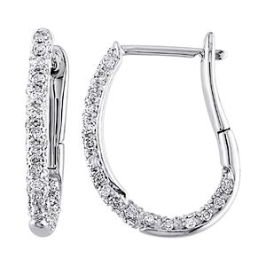 14k White Gold 1 Carat T W Diamond Inside Out Hoop Earrings