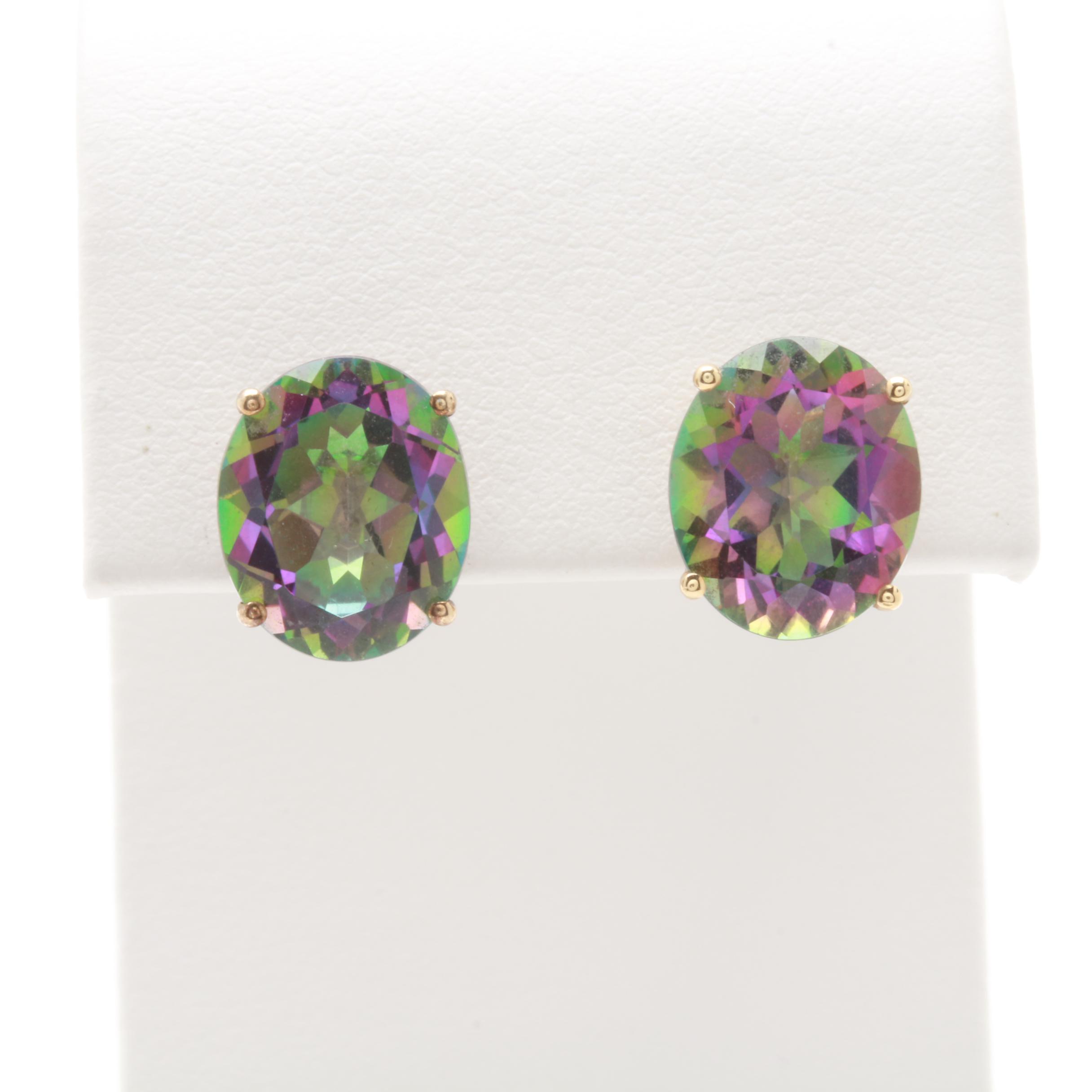 14k Yellow Gold Mystic Topaz Stud Earrings