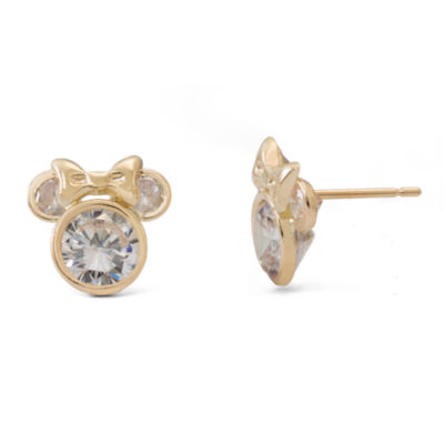 Disney 14k Yellow Gold Cubic Zirconia Minnie Mouse Stud Earrings