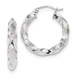 Versil 10 Karat White Gold Polished Hinged Hoop Earrings
