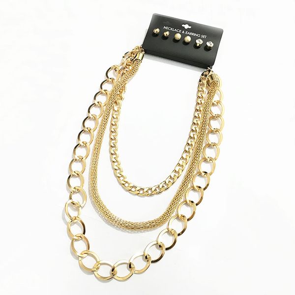 2019 Wholesale Jewelry Set Gold Rhodium 40 50 60cm Multilayered Heavy Chunky Chain Necklace 3 Stud Earrings Pack From Youerjerry 13 73 Dhgate Com