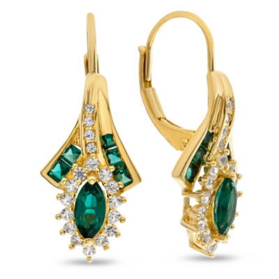 Lab Created Green Emerald 14k Gold Over Silver Drop Earrings