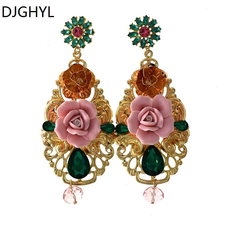 2019 New Elegant Noble Blue Flower Ladies Gold Rhinestone Earrings Women Classic Water Drops Crystal Flower Big Earrings From Djghyl 6 04