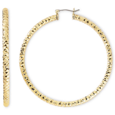 Monet Gold Tone Large Diamond Cut Hoop Earrings