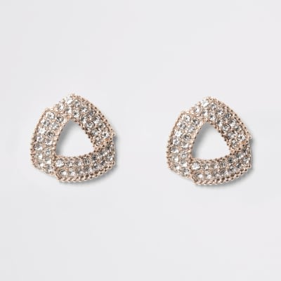 Cool Skull Head Crystal Diamante Rose Gold Colour Metal Stud Earring Design