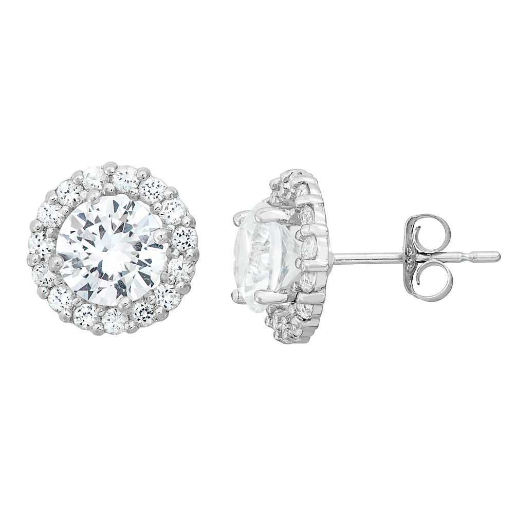 Lab Created White Sapphire White Topaz 10k White Gold Halo Stud Earrings