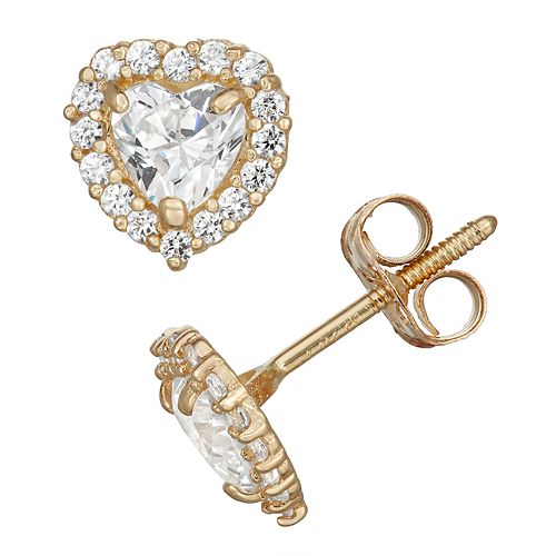 Charming Girl 14k Gold Crystal Heart Halo Stud Earrings