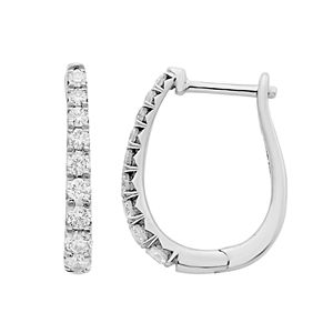 10k White Gold 1 2 Carat T W Diamond Oval Hoop Earrings