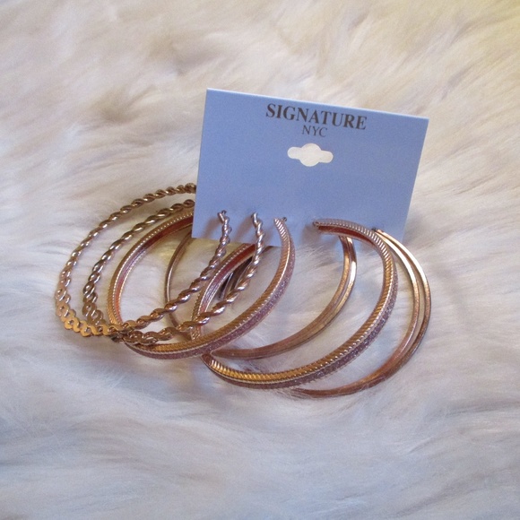 3 Pair Fashion Earrings Rose Gold Signature Nyc