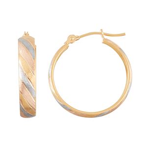 Tri Tone Sterling Silver Striped Hoop Earrings