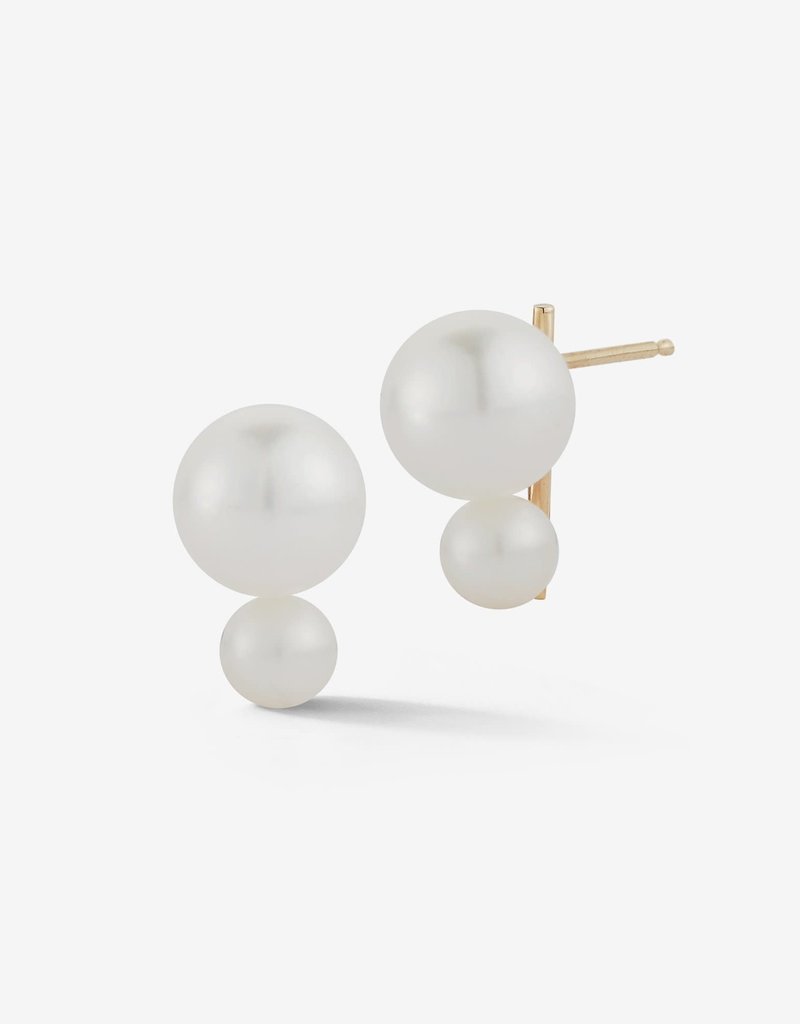 Mizuki Yellow Gold Double Pearl Stud Earrings