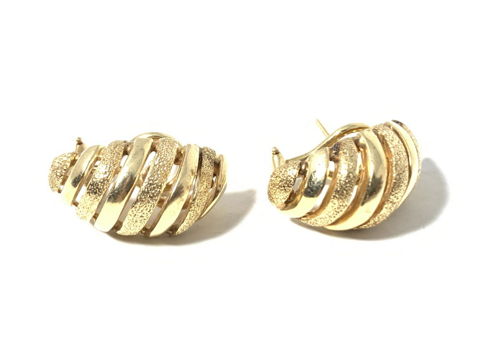 Pair Of Heavy Shell 14kt Y Gold Earrings
