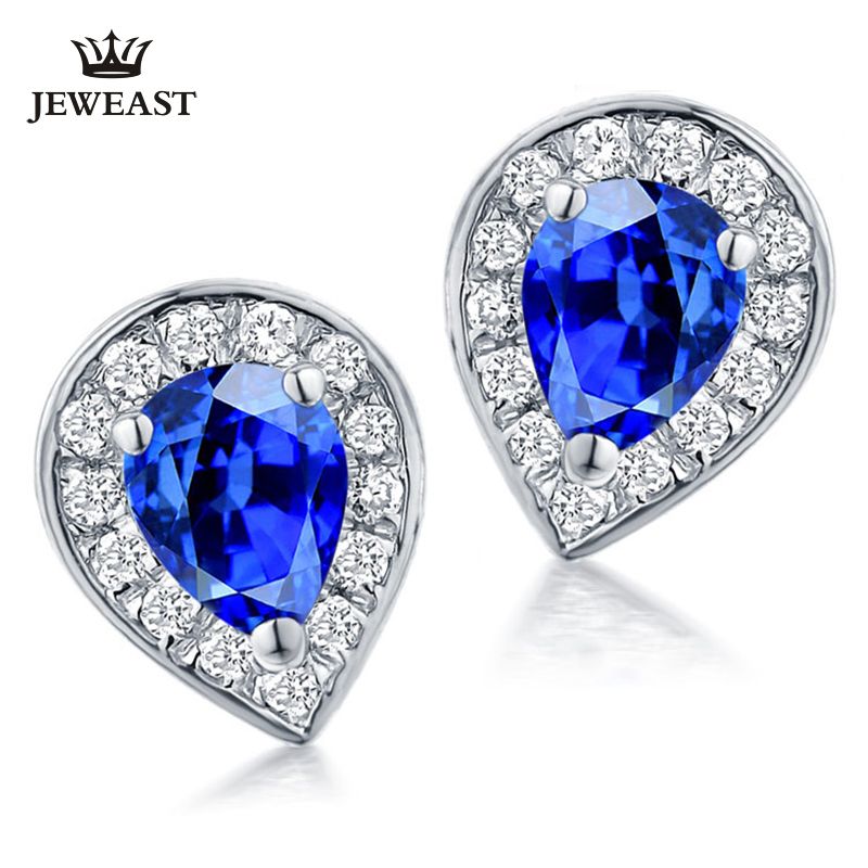 Natural Sapphire 18k Pure Gold Earring Real Au 750 Solid Gold Earrings Diamond Trendy Fine Jewelry Hot Sell New 2019