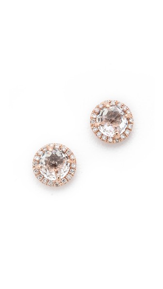14k Diamond White Topaz Stud Earrings In Clear Rose Gold