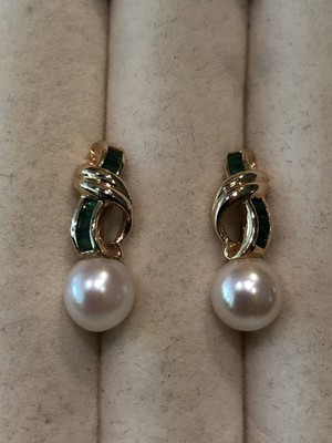 Pearl And Emerald Stud Earrings 14k Yellow Gold Setting Gemstone Fine Jewelry Ebay
