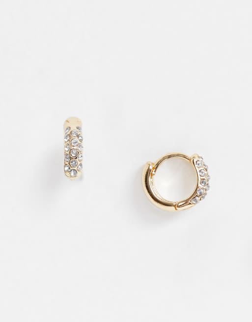 Asos Design Mini Hoop Earrings With Crystal In Gold Tone