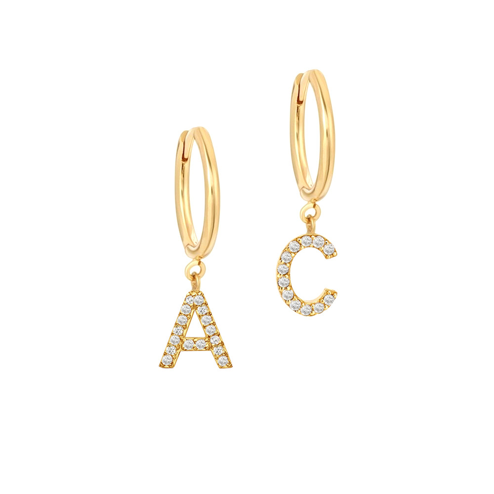 Small Hoop Earrings With Diamond Letters 14k Gold