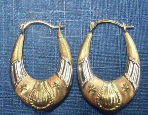 10k Yellow Gold Scalloped Hoop Earrings Oval Shrimp Puffy