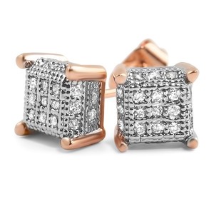 Details About Small 360 Cube Micropave Cz Stud Earrings For Men Rose Gold