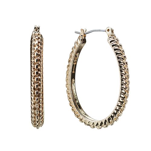 Trifari Gold Tone Textured Oval Hoop Earrings